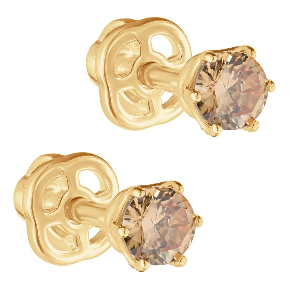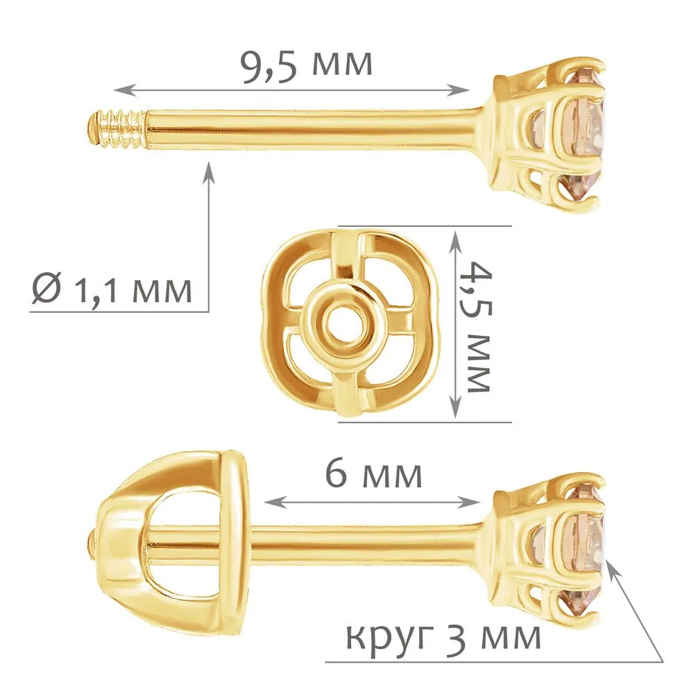 Серебряные серьги гвоздики (пусеты) с нанокристаллом, цвет персиковый, покрытие Желтое Золото. Средний вес украшения с камнями 0.6 гр. Размер главного камня: круг 3 мм. Нанокристалл - синтезированный ювелирный нанокристалл, превосходящий по блеску, преломлению света, твердости, плотности простой фианит. Все изделия собственного производства и имеют гарантию 12 месяцев. Арт. 8239YG.