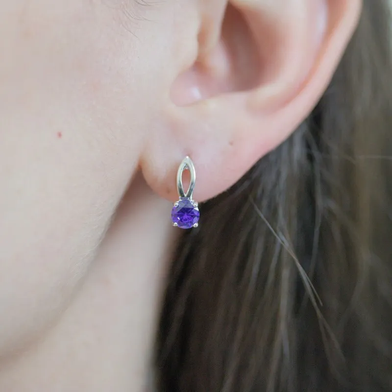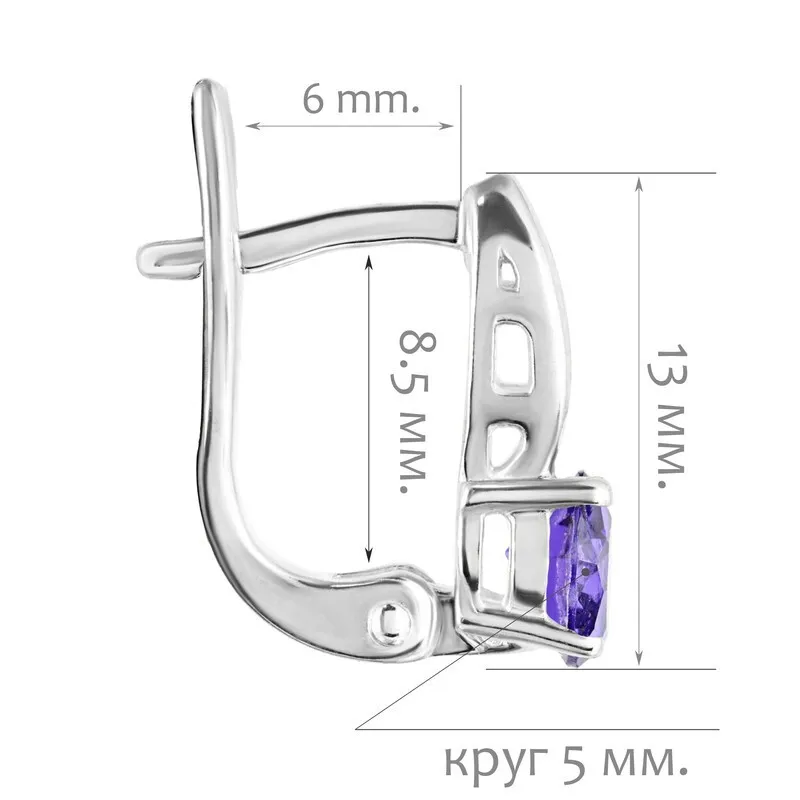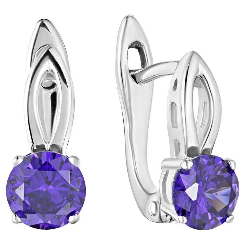 Серебряные серьги с нанокристаллом, цвет фиолетовый - коллекция Мона. Средний вес изделия с камнями 2.48 гр. Размер главного камня: круг 5 мм. Нанокристалл - синтезированный ювелирный нанокристалл, превосходящий по блеску, преломлению света, твердости, плотности простой фианит. Все изделия собственного производства. Арт. 8240.