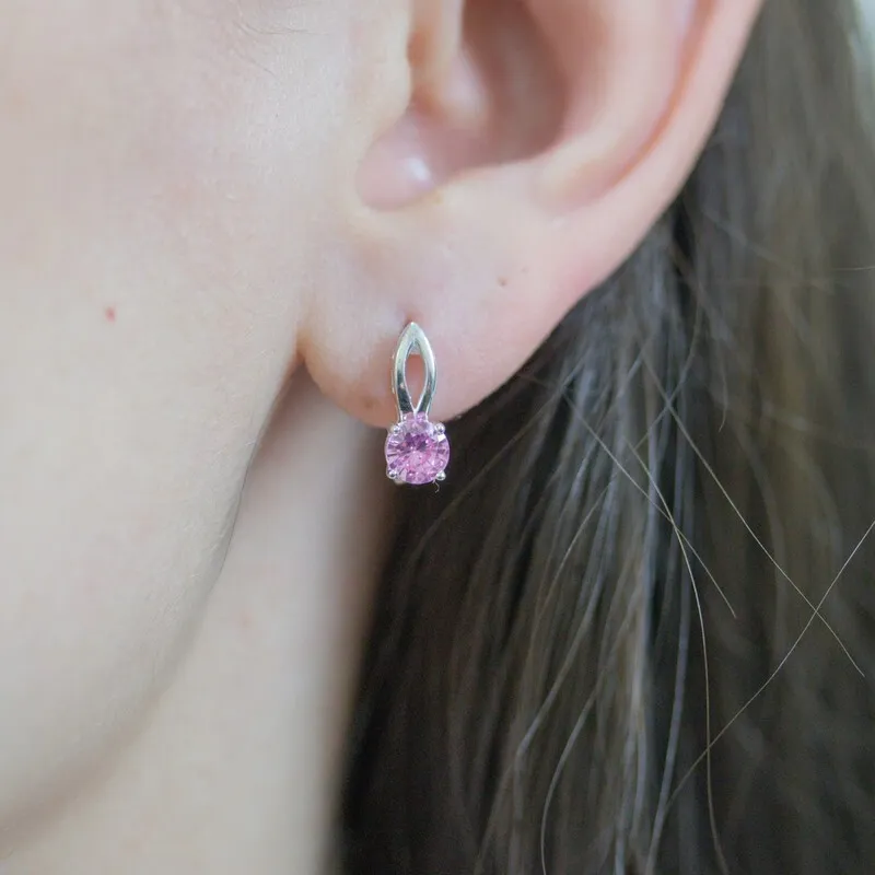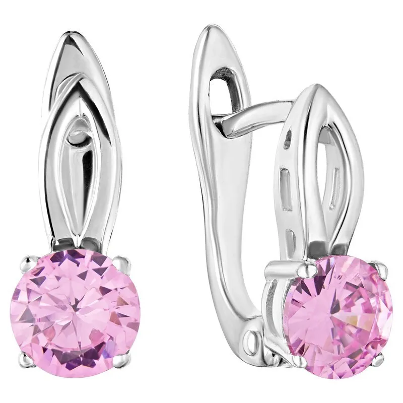 Серебряные серьги с нанокристаллом, цвет розовый - коллекция Мона / покрытие Белый Родий