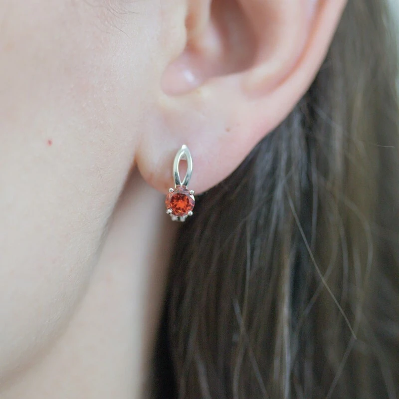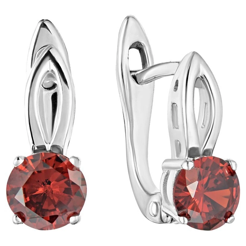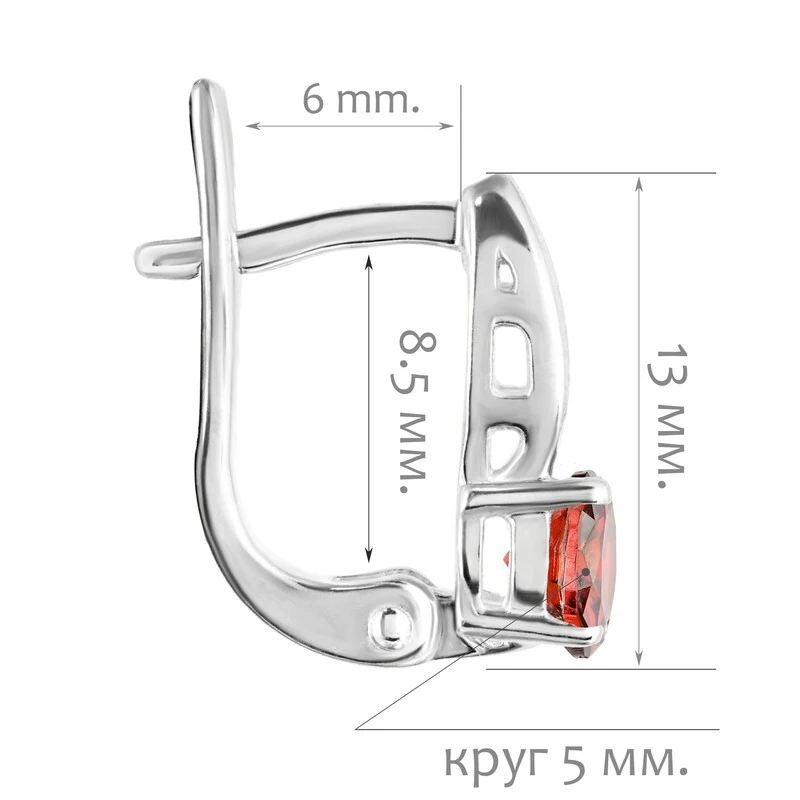 Серебряные серьги с нанокристаллом, цвет красный - коллекция Мона / покрытие Чистое Серебро