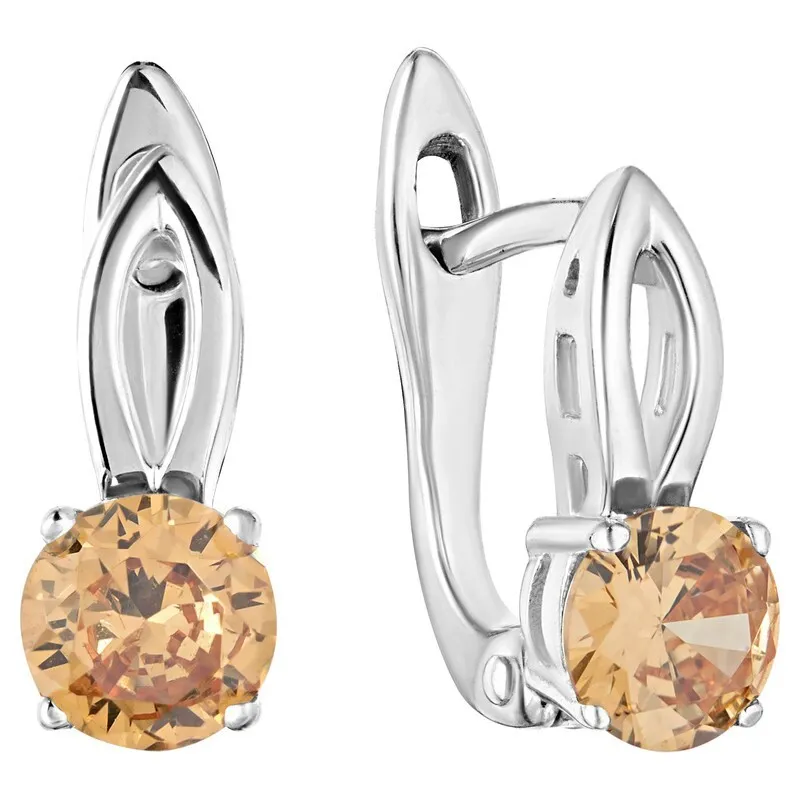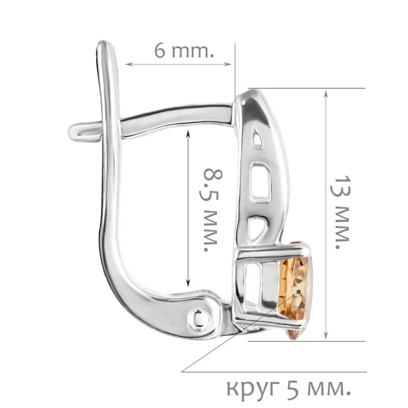Серебряные серьги с нанокристаллом, цвет персиковый - коллекция Мона. Средний вес изделия с камнями 2.48 гр. Размер главного камня: круг 5 мм. Нанокристалл - синтезированный ювелирный нанокристалл, превосходящий по блеску, преломлению света, твердости, плотности простой фианит. Все изделия собственного производства. Арт. 8243.