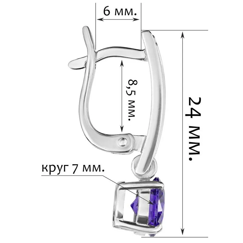 Серебряные серьги с нанокристаллом, цвет фиолетовый - коллекция Классик (мини). Средний вес изделия с камнями 3.87 гр. Размер главного камня: круг 7 мм. Нанокристалл - синтезированный ювелирный нанокристалл, превосходящий по блеску, преломлению света, твердости, плотности простой фианит. Все изделия собственного производства и имеют гарантию 36 месяцев. Арт. 8244.