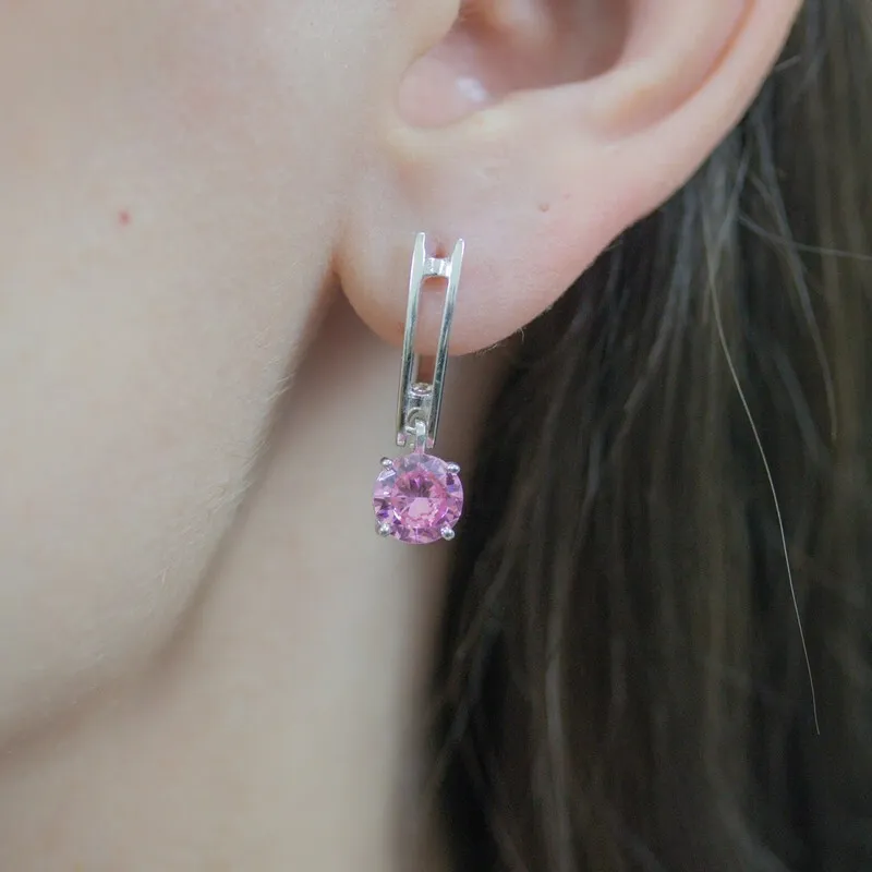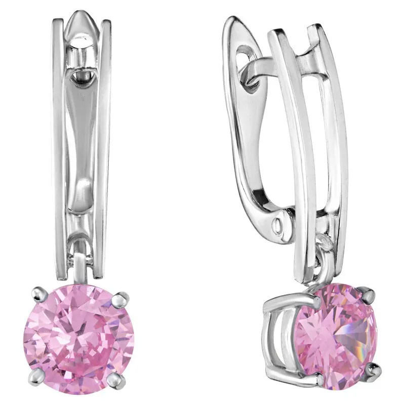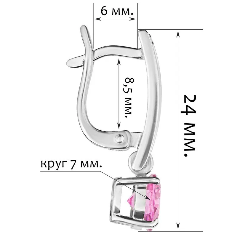 Серебряные серьги с нанокристаллом, цвет розовый - коллекция Классик (мини). Средний вес изделия с камнями 3.87 гр. Размер главного камня: круг 7 мм. Нанокристалл - синтезированный ювелирный нанокристалл, превосходящий по блеску, преломлению света, твердости, плотности простой фианит. Все изделия собственного производства. Арт. 8245.