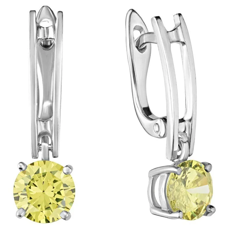 Серебряные серьги с нанокристаллом, цвет желтый - коллекция Классик (мини). Средний вес изделия с камнями 3.87 гр. Размер главного камня: круг 7 мм. Нанокристалл - синтезированный ювелирный нанокристалл, превосходящий по блеску, преломлению света, твердости, плотности простой фианит. Все изделия собственного производства. Арт. 8247.