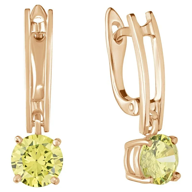 Серебряные серьги с нанокристаллом, цвет желтый - коллекция Классик (мини). Серебряные серьги 925 пробы с покрытием розовое золото. Цвет покрытия соответствует швейцарскому цветовому стандарту NIHS -4N и цвету розового золота 585 в России. На последней фотографии мы разместили сравнительную фотографию 3 цвета золотого покрытия. Помимо предания золотого цвета Вашему изделию, тонкий слой золота защищает от окисления. Для более стойкого эффекта золочения и долговечности покрытия мы дополнительно наносим подслой палладия (Pd). Средний вес изделия с камнями 3.87 гр. Размер главного камня: круг 7 мм. Нанокристалл - синтезированный ювелирный нанокристалл, превосходящий по блеску, преломлению света, твердости, плотности простой фианит. Все изделия собственного производства. Арт. 8247.