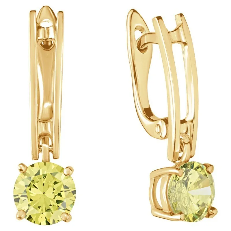 Серебряные серьги с нанокристаллом, цвет желтый - коллекция Классик (мини). Серебряные серьги 925 пробы с покрытием желтое золото. Цвет покрытия соответствует швейцарскому цветовому стандарту NIHS -FF24ct и цвету чистого золото 999.99. На последней фотографии мы разместили сравнительную фотографию 3 цвета золотого покрытия. Помимо предания золотого цвета Вашему изделию, тонкий слой золота защищает от окисления. Для более стойкого эффекта золочения и долговечности покрытия мы дополнительно наносим подслой палладия (Pd). Средний вес изделия с камнями 3.87 гр. Размер главного камня: круг 7 мм. Нанокристалл - синтезированный ювелирный нанокристалл, превосходящий по блеску, преломлению света, твердости, плотности простой фианит. Все изделия собственного производства. Арт. 8247.