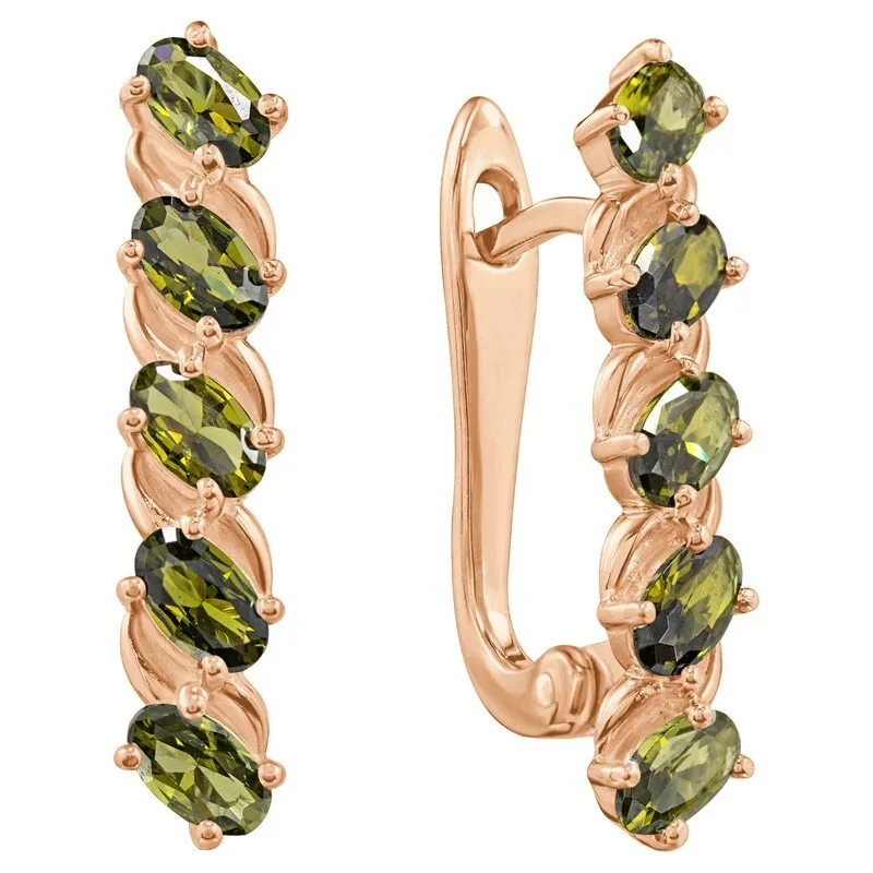 Серебряные серьги с нанокристаллом, цвет оливковый - коллекция Колосок. Серебряные серьги 925 пробы с покрытием красное золото. Цвет покрытия соответствует швейцарскому цветовому стандарту NIHS -5N и цвету красного золота 585 в России. На последней фотографии мы разместили сравнительную фотографию 3 цвета золотого покрытия. Помимо предания золотого цвета Вашему изделию, тонкий слой золота защищает от окисления. Для более стойкого эффекта золочения и долговечности покрытия мы дополнительно наносим подслой палладия (Pd). Средний вес изделия с камнями 4.09 гр. Размер главного камня: овал 3*5 мм. Нанокристалл - синтезированный ювелирный нанокристалл, превосходящий по блеску, преломлению света, твердости, плотности простой фианит. Все изделия собственного производства. Арт. 8293.