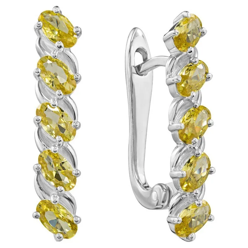 Серебряные серьги с нанокристаллом, цвет желтый - коллекция Колосок. Средний вес изделия с камнями 4.09 гр. Размер главного камня: овал 3*5 мм. Нанокристалл - синтезированный ювелирный нанокристалл, превосходящий по блеску, преломлению света, твердости, плотности простой фианит. Все изделия собственного производства. Арт. 8295.