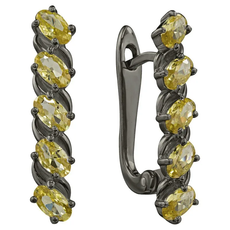 Серебряные серьги с нанокристаллом, цвет желтый - коллекция Колосок, покрытие Черный Родий.