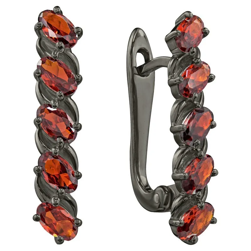 Серебряные серьги с нанокристаллом, цвет красный - коллекция Колосок, покрытие Черный Родий.