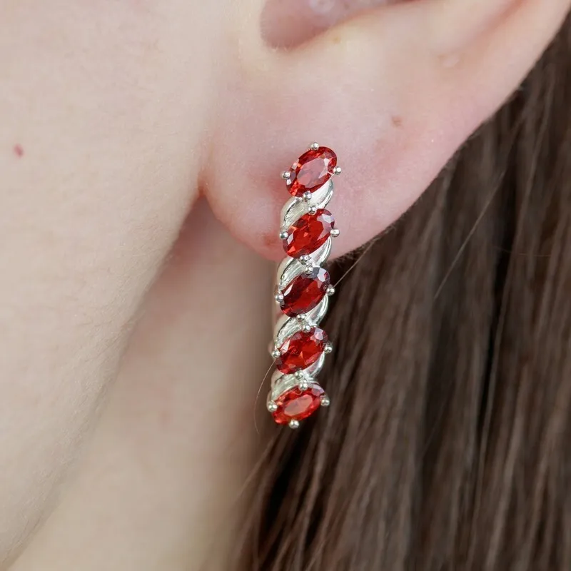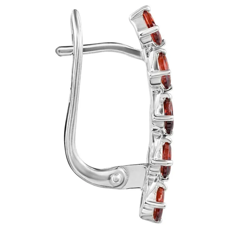 Серебряные серьги с нанокристаллом, цвет красный - коллекция Колосок. Средний вес изделия с камнями 4.09 гр. Размер главного камня: овал 3*5 мм. Нанокристалл - синтезированный ювелирный нанокристалл, превосходящий по блеску, преломлению света, твердости, плотности простой фианит. Все изделия собственного производства. Арт. 8296.