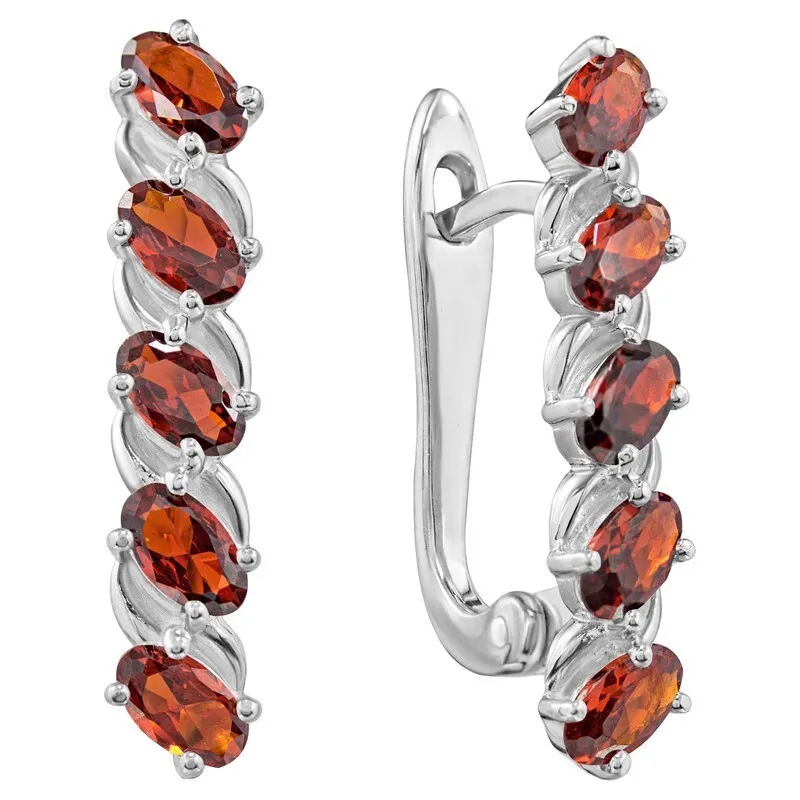 Серебряные серьги с нанокристаллом, цвет красный - коллекция Колосок. Средний вес изделия с камнями 4.09 гр. Размер главного камня: овал 3*5 мм. Нанокристалл - синтезированный ювелирный нанокристалл, превосходящий по блеску, преломлению света, твердости, плотности простой фианит. Все изделия собственного производства. Арт. 8296.