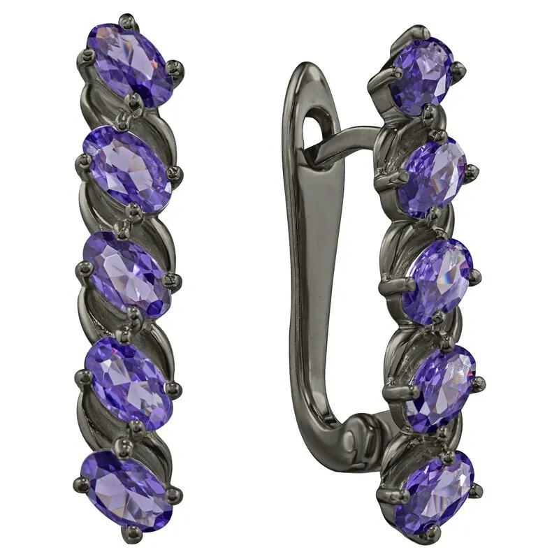 Серебряные серьги с нанокристаллом, цвет фиолетовый - коллекция Колосок, покрытие Черный Родий.