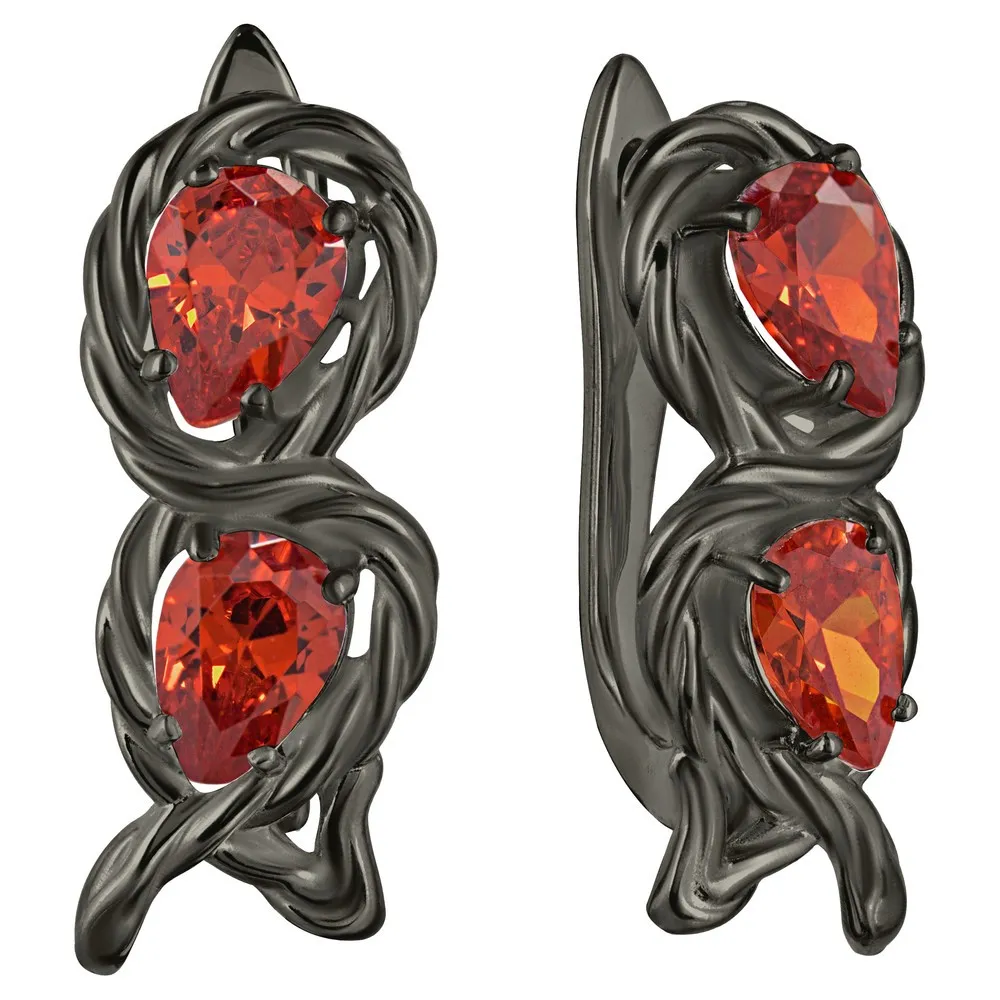 Серебряные серьги с нанокристаллом, цвет оранжевый - коллекция Ривьера, покрытие Черный Родий.