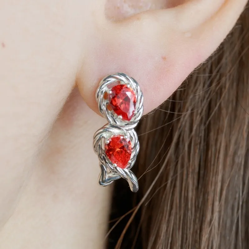 Серебряные серьги с нанокристаллом, цвет оранжевый - коллекция Ривьера. Средний вес изделия с камнями 5.27 гр. Размер главного камня: груша 5*7 мм. Нанокристалл - синтезированный ювелирный нанокристалл, превосходящий по блеску, преломлению света, твердости, плотности простой фианит. Все изделия собственного производства. Арт. 8303.
