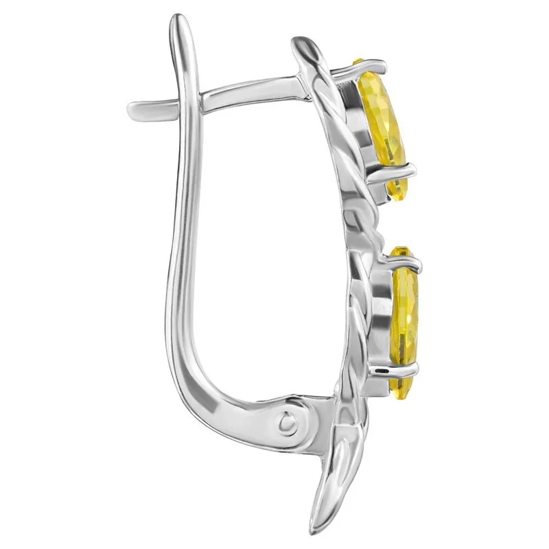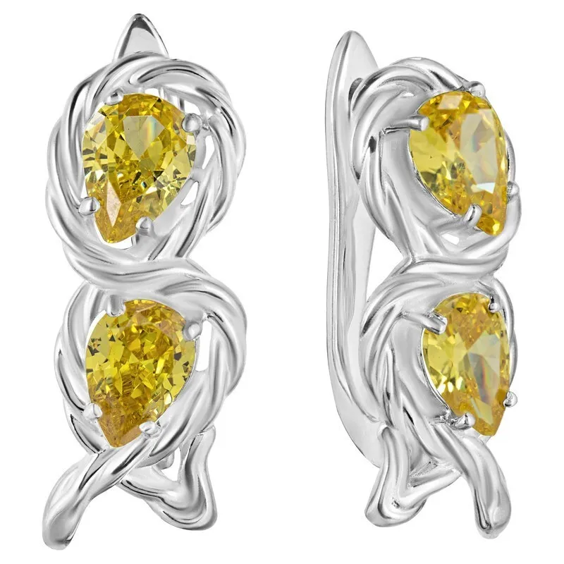 Серебряные серьги с нанокристаллом, цвет желтый - коллекция Ривьера. Средний вес изделия с камнями 5.27 гр. Размер главного камня: груша 5*7 мм. Нанокристалл - синтезированный ювелирный нанокристалл, превосходящий по блеску, преломлению света, твердости, плотности простой фианит. Все изделия собственного производства. Арт. 8306.