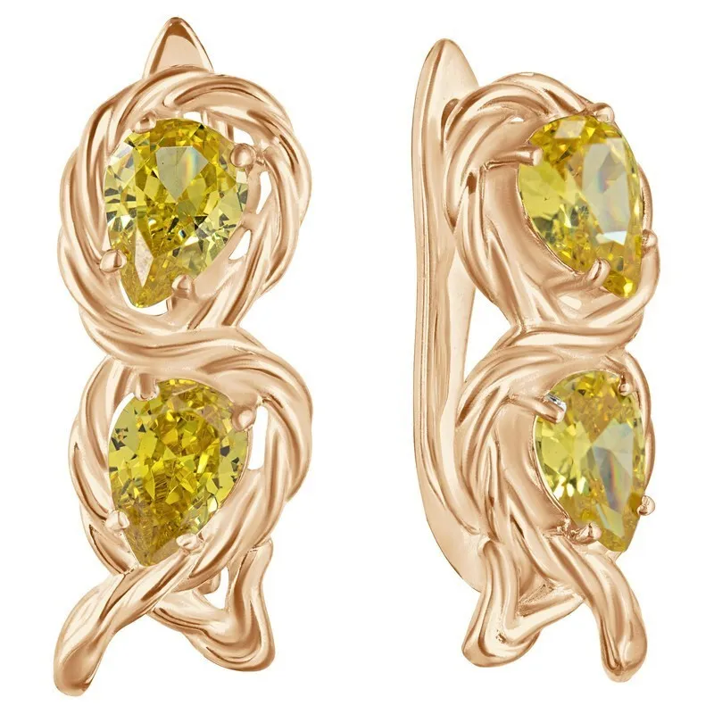 Серебряные серьги с нанокристаллом, цвет желтый - коллекция Ривьера. Серебряные серьги 925 пробы с покрытием розовое золото. Цвет покрытия соответствует швейцарскому цветовому стандарту NIHS -4N и цвету розового золота 585 в России. На последней фотографии мы разместили сравнительную фотографию 3 цвета золотого покрытия. Помимо предания золотого цвета Вашему изделию, тонкий слой золота защищает от окисления. Для более стойкого эффекта золочения и долговечности покрытия мы дополнительно наносим подслой палладия (Pd). Средний вес изделия с камнями 5.27 гр. Размер главного камня: груша 5*7 мм. Нанокристалл - синтезированный ювелирный нанокристалл, превосходящий по блеску, преломлению света, твердости, плотности простой фианит. Все изделия собственного производства. Арт. 8306.