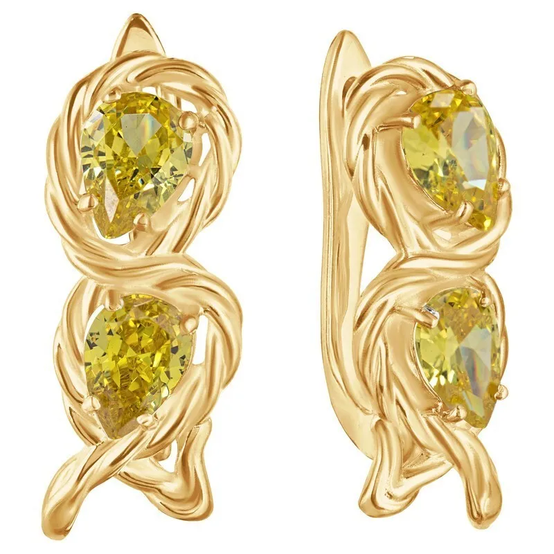 Серебряные серьги с нанокристаллом, цвет желтый - коллекция Ривьера. Серебряные серьги 925 пробы с покрытием желтое золото. Цвет покрытия соответствует швейцарскому цветовому стандарту NIHS -FF24ct и цвету чистого золото 999.99. На последней фотографии мы разместили сравнительную фотографию 3 цвета золотого покрытия. Помимо предания золотого цвета Вашему изделию, тонкий слой золота защищает от окисления. Для более стойкого эффекта золочения и долговечности покрытия мы дополнительно наносим подслой палладия (Pd). Средний вес изделия с камнями 5.27 гр. Размер главного камня: груша 5*7 мм. Нанокристалл - синтезированный ювелирный нанокристалл, превосходящий по блеску, преломлению света, твердости, плотности простой фианит. Все изделия собственного производства. Арт. 8306.