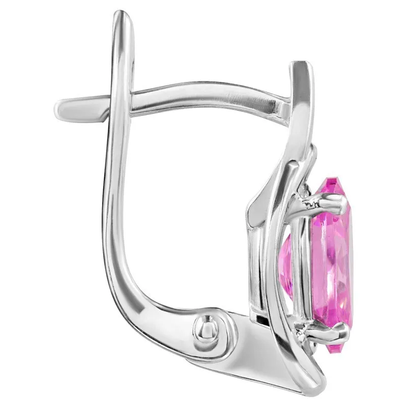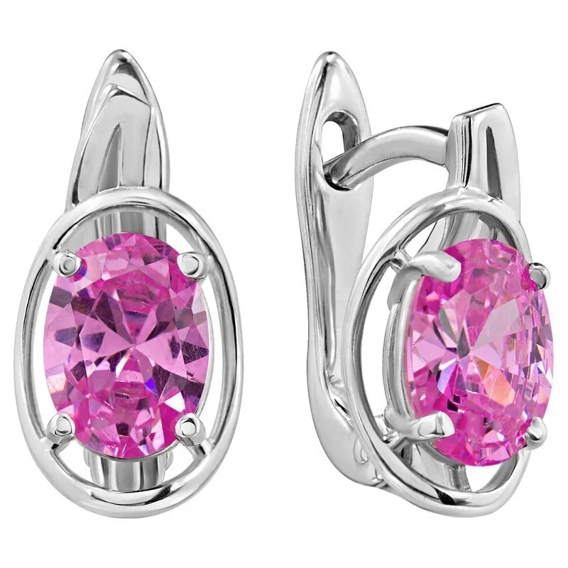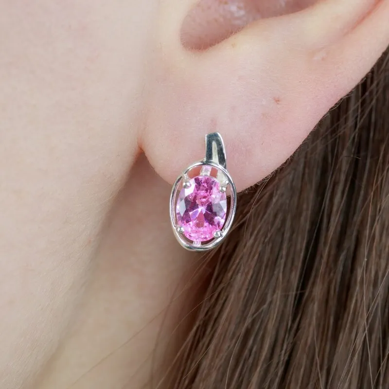 Серебряные серьги с нанокристаллом, цвет розовый - коллекция Фрейя. Средний вес изделия с камнями 3.57 гр. Размер главного камня: овал 6*8 мм. Нанокристалл - синтезированный ювелирный нанокристалл, превосходящий по блеску, преломлению света, твердости, плотности простой фианит. Все изделия собственного производства. Арт. 8311.