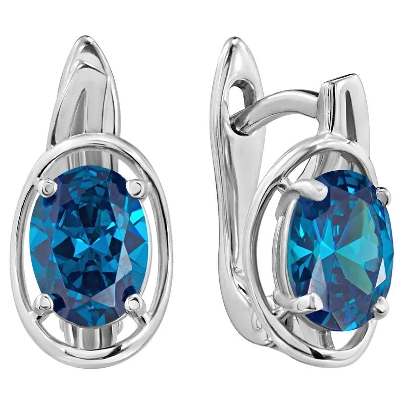 Серебряные серьги с нанокристаллом, цвет синий сапфир - коллекция Фрейя. Средний вес изделия с камнями 3.57 гр. Размер главного камня: овал 6*8 мм. Нанокристалл - синтезированный ювелирный нанокристалл, превосходящий по блеску, преломлению света, твердости, плотности простой фианит. Все изделия собственного производства. Арт. 8312.
