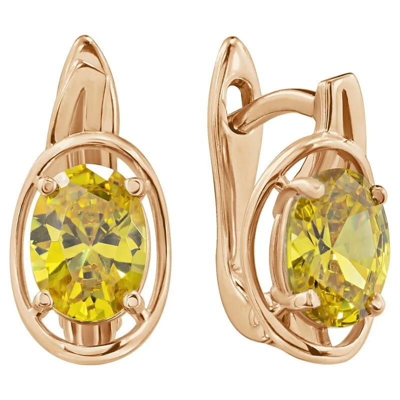 Серебряные серьги с нанокристаллом, цвет желтый - коллекция Фрейя. Серебряные серьги 925 пробы с покрытием розовое золото. Цвет покрытия соответствует швейцарскому цветовому стандарту NIHS -4N и цвету розового золота 585 в России. На последней фотографии мы разместили сравнительную фотографию 3 цвета золотого покрытия. Помимо предания золотого цвета Вашему изделию, тонкий слой золота защищает от окисления. Для более стойкого эффекта золочения и долговечности покрытия мы дополнительно наносим подслой палладия (Pd). Средний вес изделия с камнями 3.57 гр. Размер главного камня: овал 6*8 мм. Нанокристалл - синтезированный ювелирный нанокристалл, превосходящий по блеску, преломлению света, твердости, плотности простой фианит. Все изделия собственного производства. Арт. 8316.
