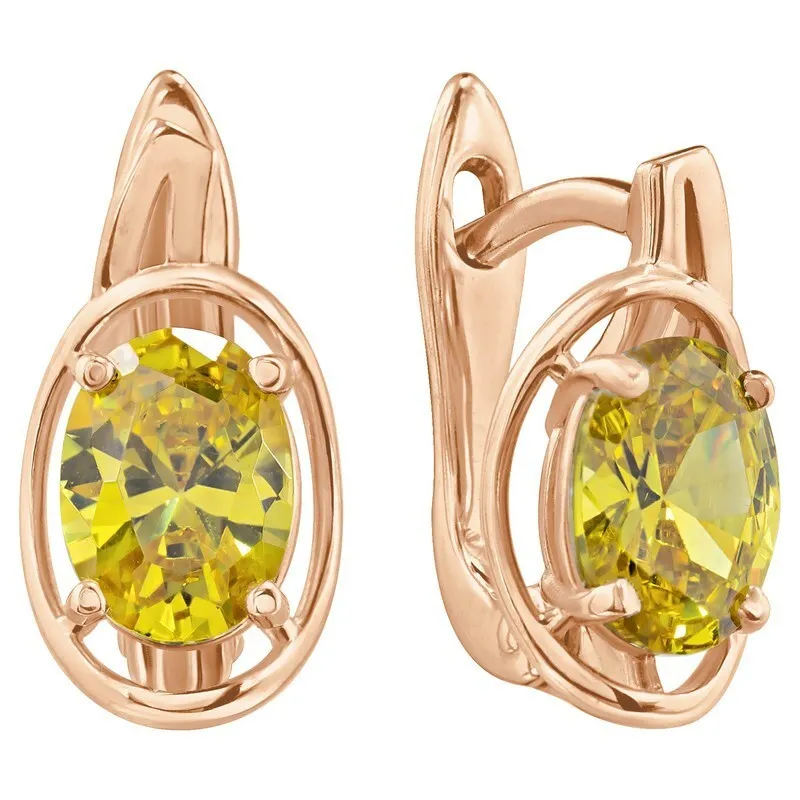 Серебряные серьги с нанокристаллом, цвет желтый - коллекция Фрейя. Серебряные серьги 925 пробы с покрытием красное золото. Цвет покрытия соответствует швейцарскому цветовому стандарту NIHS -5N и цвету красного золота 585 в России. На последней фотографии мы разместили сравнительную фотографию 3 цвета золотого покрытия. Помимо предания золотого цвета Вашему изделию, тонкий слой золота защищает от окисления. Для более стойкого эффекта золочения и долговечности покрытия мы дополнительно наносим подслой палладия (Pd). Средний вес изделия с камнями 3.57 гр. Размер главного камня: овал 6*8 мм. Нанокристалл - синтезированный ювелирный нанокристалл, превосходящий по блеску, преломлению света, твердости, плотности простой фианит. Все изделия собственного производства. Арт. 8316.