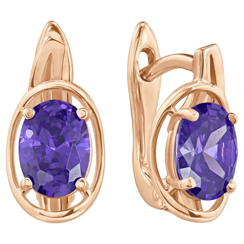 Серебряные серьги с нанокристаллом, цвет фиолетовый - коллекция Фрейя. Серебряные серьги 925 пробы с покрытием красное золото. Цвет покрытия соответствует швейцарскому цветовому стандарту NIHS -5N и цвету красного золота 585 в России. На последней фотографии мы разместили сравнительную фотографию 3 цвета золотого покрытия. Помимо предания золотого цвета Вашему изделию, тонкий слой золота защищает от окисления. Для более стойкого эффекта золочения и долговечности покрытия мы дополнительно наносим подслой палладия (Pd). Средний вес изделия с камнями 3.57 гр. Размер главного камня: овал 6*8 мм. Нанокристалл - синтезированный ювелирный нанокристалл, превосходящий по блеску, преломлению света, твердости, плотности простой фианит. Все изделия собственного производства. Арт. 8318.