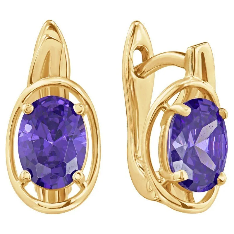 Серебряные серьги с нанокристаллом, цвет фиолетовый - коллекция Фрейя. Серебряные серьги 925 пробы с покрытием желтое золото. Цвет покрытия соответствует швейцарскому цветовому стандарту NIHS -FF24ct и цвету чистого золото 999.99. На последней фотографии мы разместили сравнительную фотографию 3 цвета золотого покрытия. Помимо предания золотого цвета Вашему изделию, тонкий слой золота защищает от окисления. Для более стойкого эффекта золочения и долговечности покрытия мы дополнительно наносим подслой палладия (Pd). Средний вес изделия с камнями 3.57 гр. Размер главного камня: овал 6*8 мм. Нанокристалл - синтезированный ювелирный нанокристалл, превосходящий по блеску, преломлению света, твердости, плотности простой фианит. Все изделия собственного производства. Арт. 8318.
