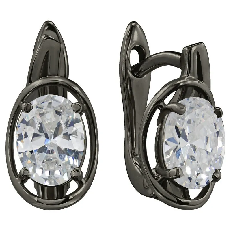 Серебряные серьги с нанокристаллом, цвет белый - коллекция Фрейя, покрытие Черный Родий.