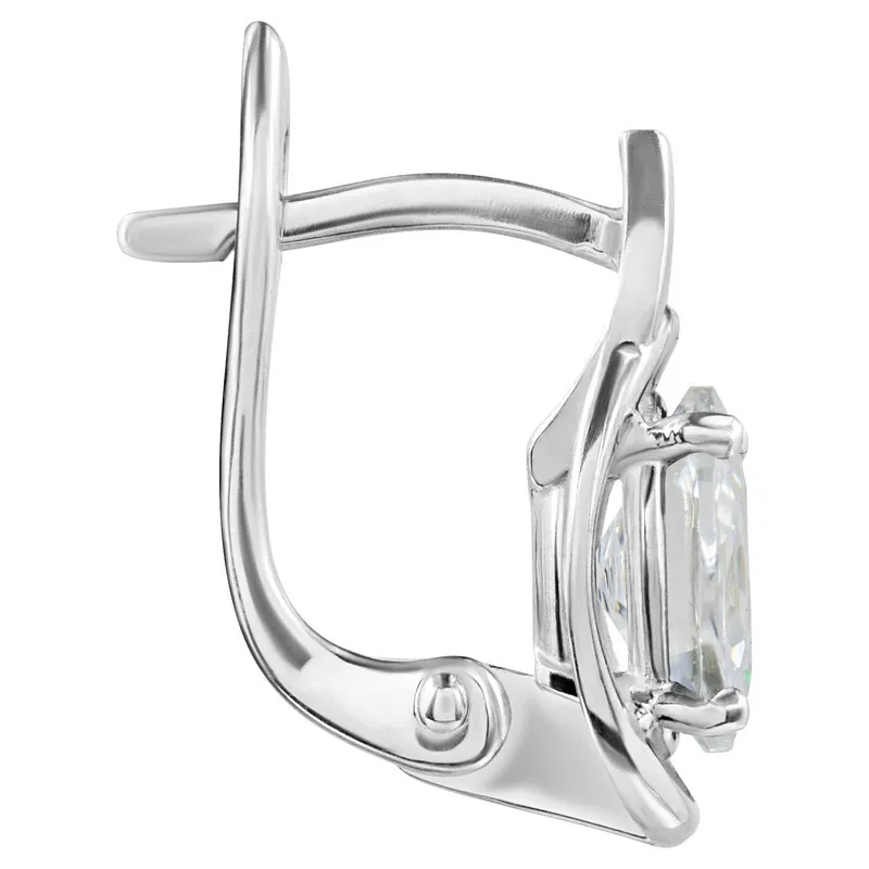Серебряные серьги с нанокристаллом, цвет белый - коллекция Фрейя. Средний вес изделия с камнями 3.57 гр. Размер главного камня: овал 6*8 мм. Нанокристалл - синтезированный ювелирный нанокристалл, превосходящий по блеску, преломлению света, твердости, плотности простой фианит. Все изделия собственного производства. Арт. 8319.