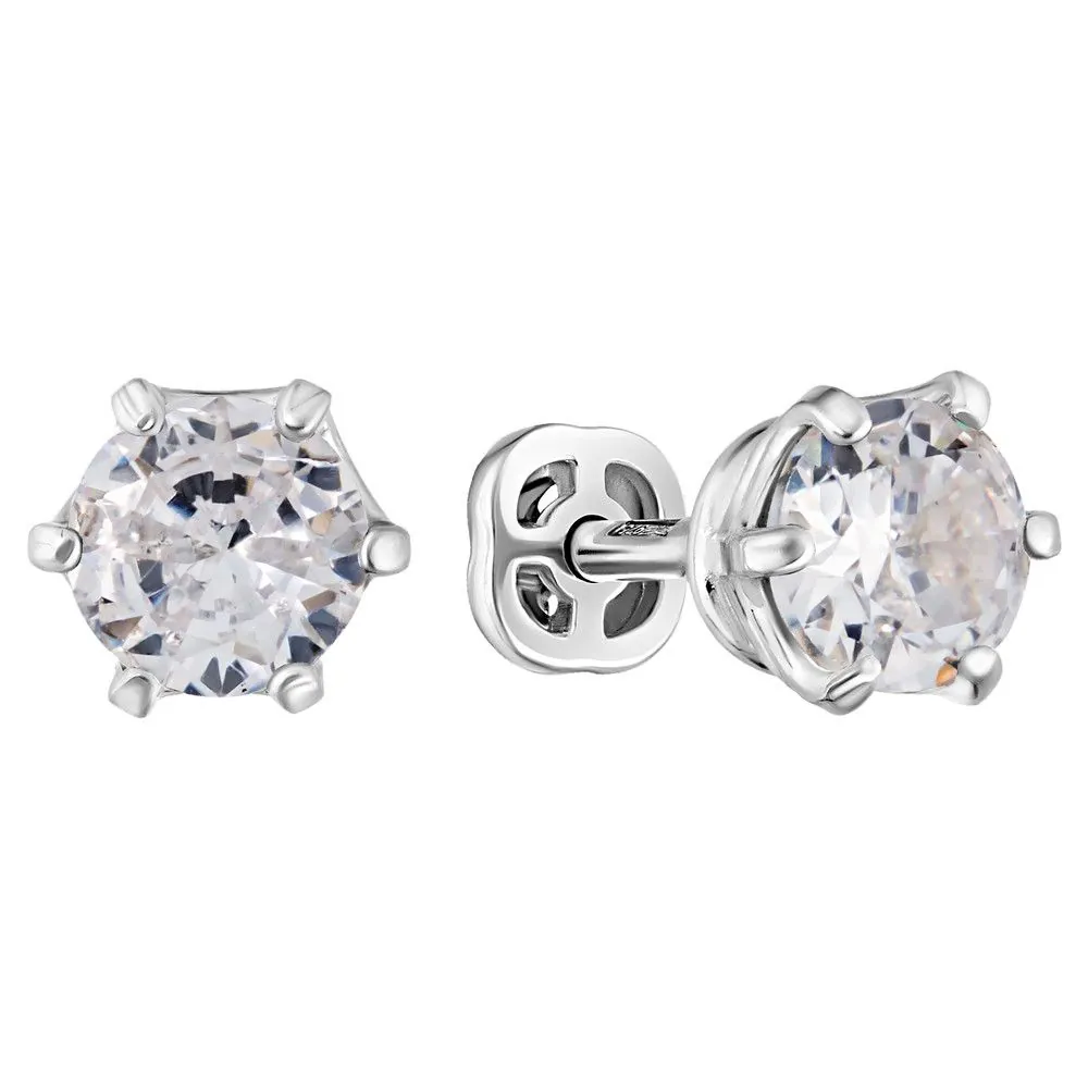 Серебряные серьги гвоздики (пусеты) с белым нанокристаллом 5 мм. / Белый Родий. Средний вес ювелирного украшения с камнями 1.37 гр. Размер главного камня: круг 5 мм. Нанокристалл - синтезированный ювелирный нанокристалл, превосходящий по блеску, преломлению света, твердости, плотности простой фианит. Все изделия собственного производства и имеют гарантию 12 месяцев. Арт. 8581WR.