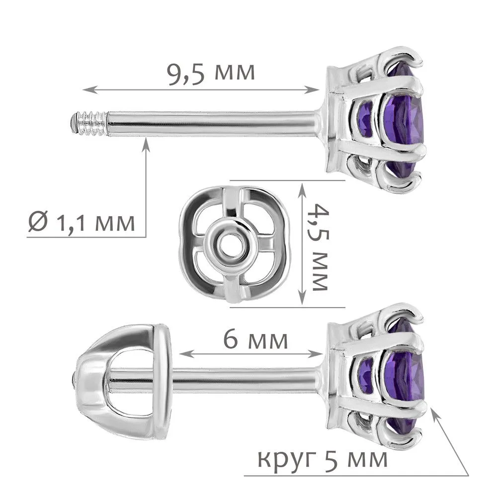 Серебряные серьги гвоздики (пусеты) с фиолетовым нанокристаллом 5 мм. / Без покрытия. Средний вес ювелирного украшения с камнями 1.37 гр. Размер главного камня: круг 5 мм. Нанокристалл - синтезированный ювелирный нанокристалл, превосходящий по блеску, преломлению света, твердости, плотности простой фианит. Все изделия собственного производства и имеют гарантию 12 месяцев. Арт. 8582NP.