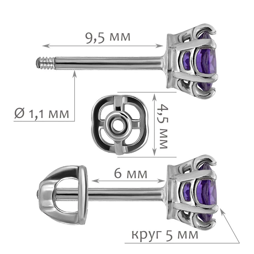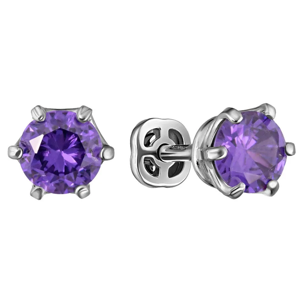 Серебряные серьги гвоздики (пусеты) с фиолетовым нанокристаллом 5 мм. / Палладий. Средний вес ювелирного украшения с камнями 1.37 гр. Размер главного камня: круг 5 мм. Нанокристалл - синтезированный ювелирный нанокристалл, превосходящий по блеску, преломлению света, твердости, плотности простой фианит. Все изделия собственного производства и имеют гарантию 12 месяцев. Арт. 8582PD.