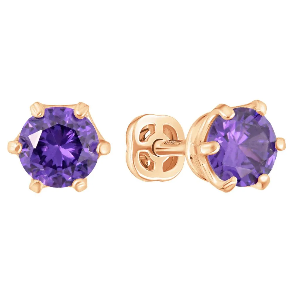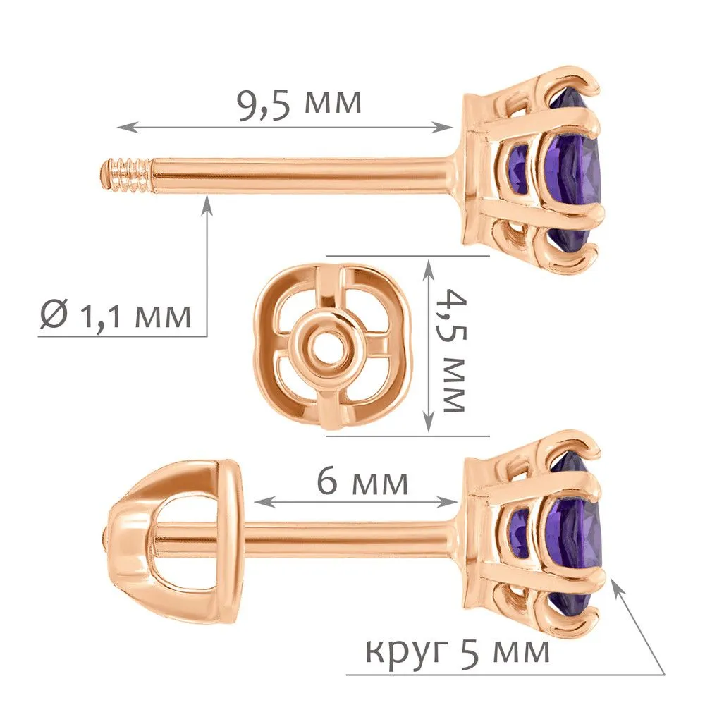 Серебряные серьги гвоздики (пусеты) с фиолетовым нанокристаллом 5 мм. / Красное золото. Средний вес ювелирного украшения с камнями 1.37 гр. Размер главного камня: круг 5 мм. Нанокристалл - синтезированный ювелирный нанокристалл, превосходящий по блеску, преломлению света, твердости, плотности простой фианит. Все изделия собственного производства и имеют гарантию 12 месяцев. Арт. 8582RG.