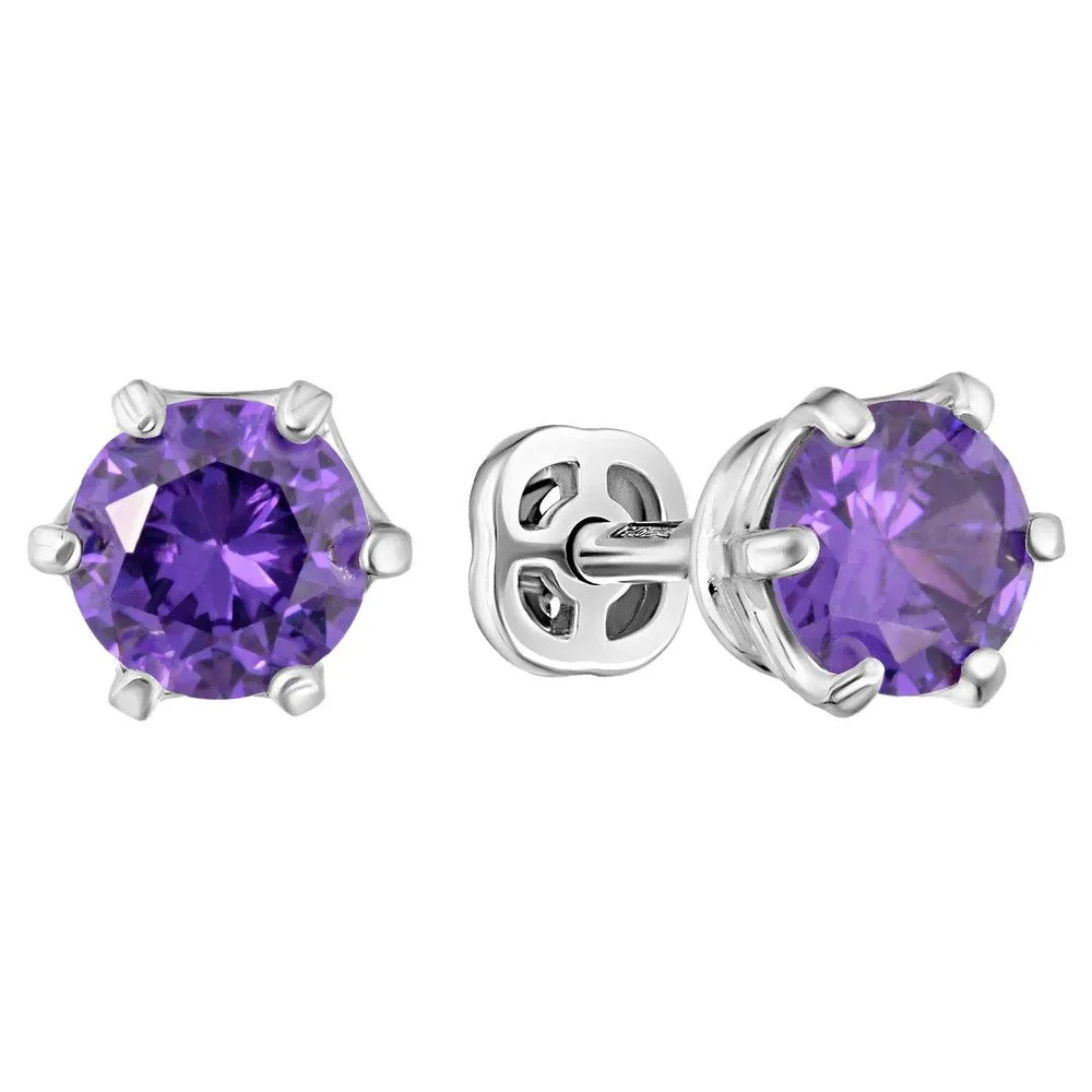 Серебряные серьги гвоздики (пусеты) с фиолетовым нанокристаллом 5 мм. / Белый Родий. Средний вес ювелирного украшения с камнями 1.37 гр. Размер главного камня: круг 5 мм. Нанокристалл - синтезированный ювелирный нанокристалл, превосходящий по блеску, преломлению света, твердости, плотности простой фианит. Все изделия собственного производства и имеют гарантию 12 месяцев. Арт. 8582WR.