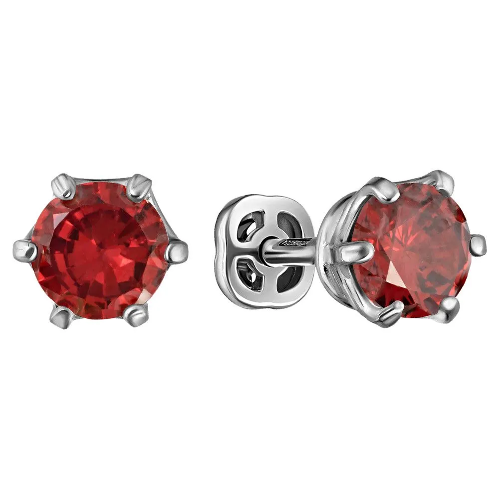Серебряные серьги гвоздики (пусеты) с красным нанокристаллом 5 мм. / Палладий. Средний вес ювелирного украшения с камнями 1.37 гр. Размер главного камня: круг 5 мм. Нанокристалл - синтезированный ювелирный нанокристалл, превосходящий по блеску, преломлению света, твердости, плотности простой фианит. Все изделия собственного производства и имеют гарантию 12 месяцев. Арт. 8583PD.