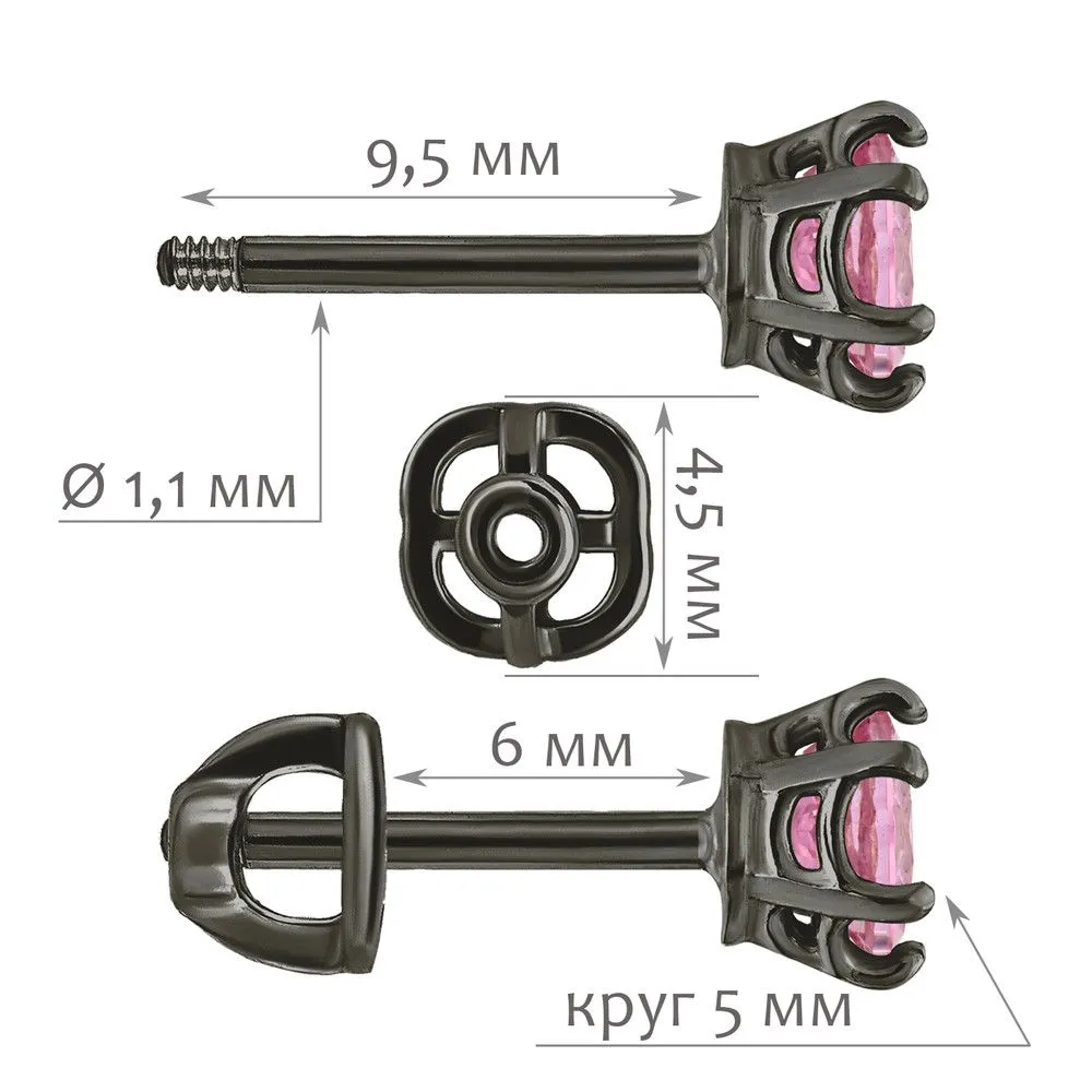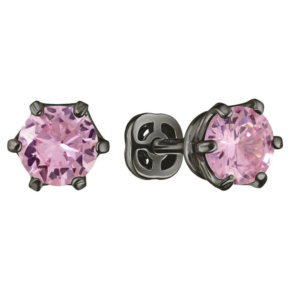 Серебряные серьги гвоздики (пусеты) с розовым нанокристаллом 5 мм. / Черный Родий. Средний вес ювелирного украшения с камнями 1.37 гр. Размер главного камня: круг 5 мм. Нанокристалл - синтезированный ювелирный нанокристалл, превосходящий по блеску, преломлению света, твердости, плотности простой фианит. Все изделия собственного производства и имеют гарантию 12 месяцев. Арт. 8584BR.