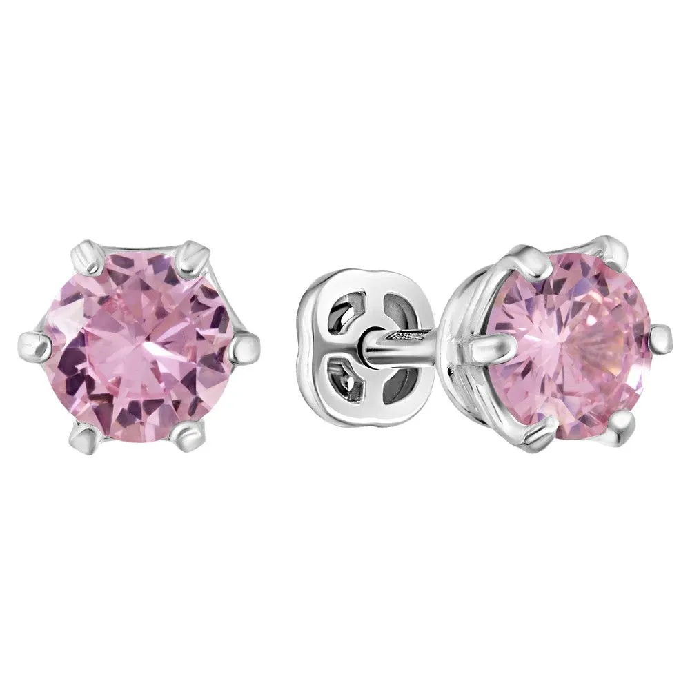 Серебряные серьги гвоздики (пусеты) с розовым нанокристаллом 5 мм. / Без покрытия. Средний вес ювелирного украшения с камнями 1.37 гр. Размер главного камня: круг 5 мм. Нанокристалл - синтезированный ювелирный нанокристалл, превосходящий по блеску, преломлению света, твердости, плотности простой фианит. Все изделия собственного производства и имеют гарантию 12 месяцев. Арт. 8584NP.