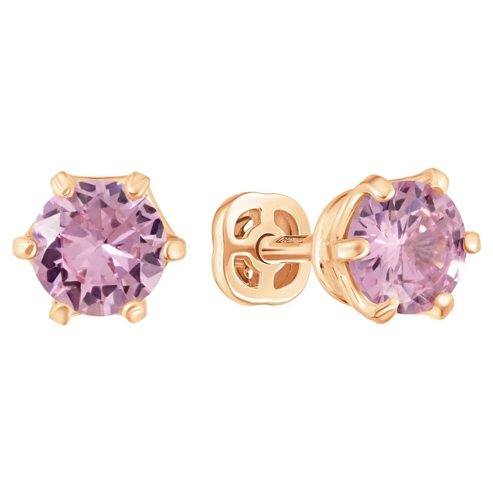 Серебряные серьги гвоздики (пусеты) с розовым нанокристаллом 5 мм. / Красное золото. Средний вес ювелирного украшения с камнями 1.37 гр. Размер главного камня: круг 5 мм. Нанокристалл - синтезированный ювелирный нанокристалл, превосходящий по блеску, преломлению света, твердости, плотности простой фианит. Все изделия собственного производства и имеют гарантию 12 месяцев. Арт. 8584RG.