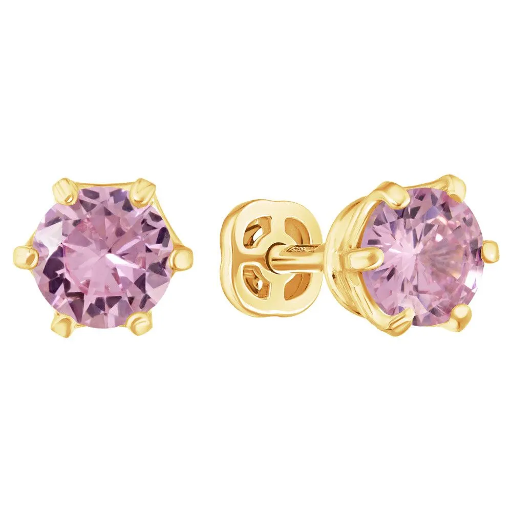 Серебряные серьги гвоздики (пусеты) с розовым нанокристаллом 5 мм. / Желтое Золото. Средний вес ювелирного украшения с камнями 1.37 гр. Размер главного камня: круг 5 мм. Нанокристалл - синтезированный ювелирный нанокристалл, превосходящий по блеску, преломлению света, твердости, плотности простой фианит. Все изделия собственного производства и имеют гарантию 12 месяцев. Арт. 8584YG.