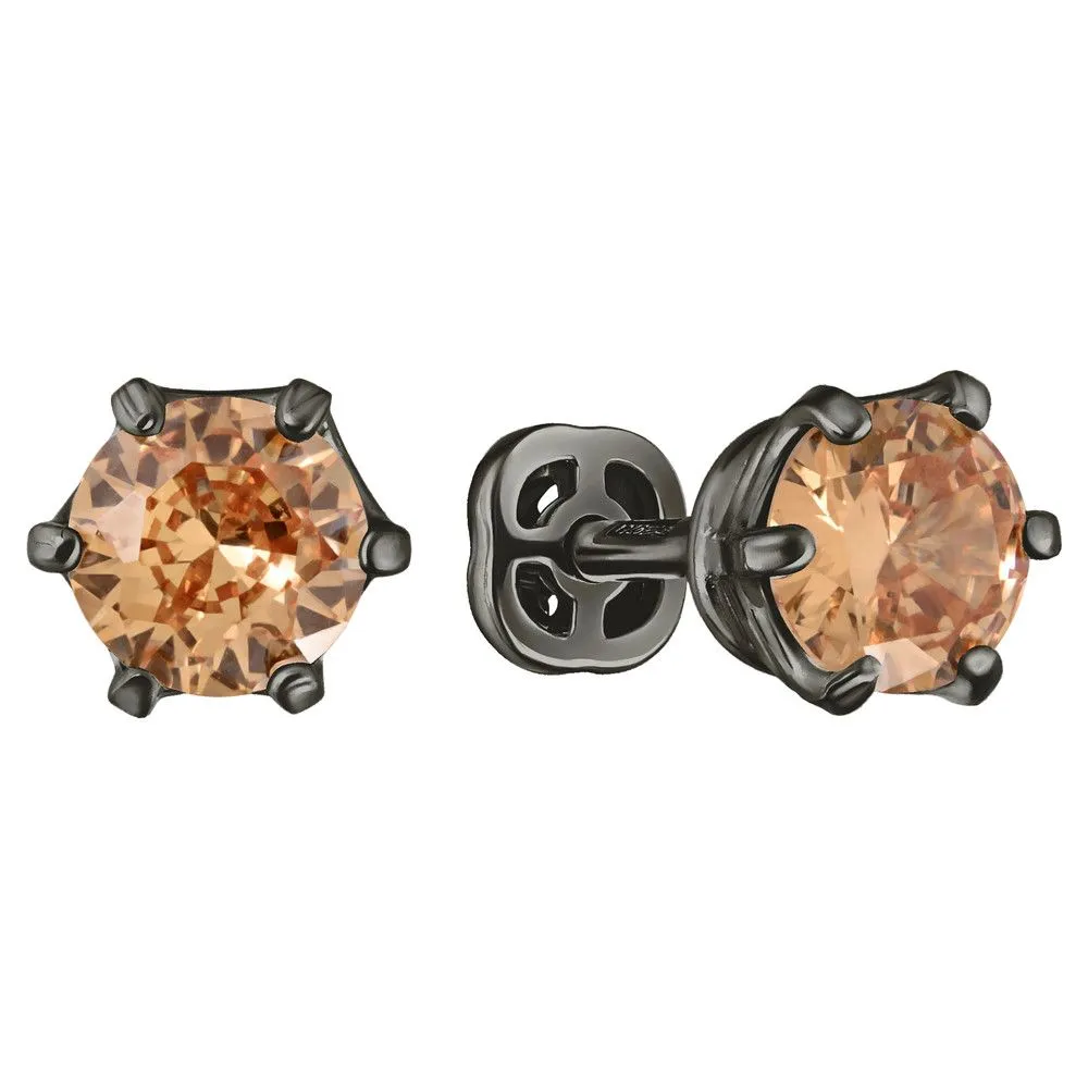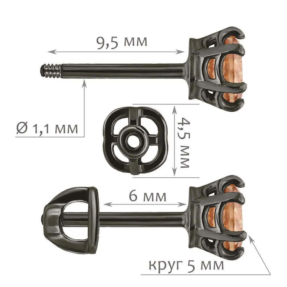 Серебряные серьги гвоздики (пусеты) с персиковым нанокристаллом 5 мм. / Черный Родий. Средний вес ювелирного украшения с камнями 1.37 гр. Размер главного камня: круг 5 мм. Нанокристалл - синтезированный ювелирный нанокристалл, превосходящий по блеску, преломлению света, твердости, плотности простой фианит. Все изделия собственного производства и имеют гарантию 12 месяцев. Арт. 8586BR.