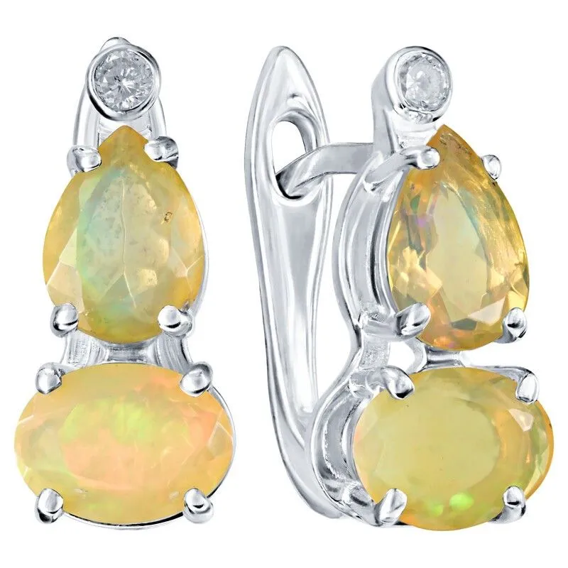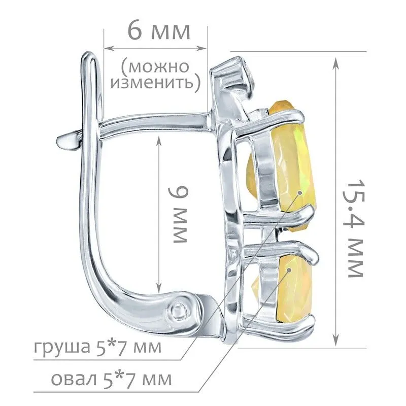 Серебряные серьги с натуральным опалом (1 класс) - коллекция Сансара / покрытие Чистое Серебро.Средний вес украшения с камнями 3.33 гр.Месторождение(я): Опал (Эфиопия).Ювелирные вставки:Опал (Натуральный) овал 5*7 мм., средний вес: 0.46 карат.Опал (Натуральный) груша 5*7 мм., средний вес: 0.38 карат.Белый Нанокристалл круг 2 мм., средний вес: 0.06 карат.Все изделия собственного производства и имеют гарантию 12 месяцев. Арт. 8702AG . Опал – это благородный камень, известный ещё с древности. Ему приписывали разнообразные магические свойства. Окраска опала многовариантна, выделяют более ста типов. Он помогал справиться с порчей и сглазом, защищал от негативной энергетики, способствовал излечению мигреней. Как талисман для ребенка, становился защитником от дурных сил и заболеваний.