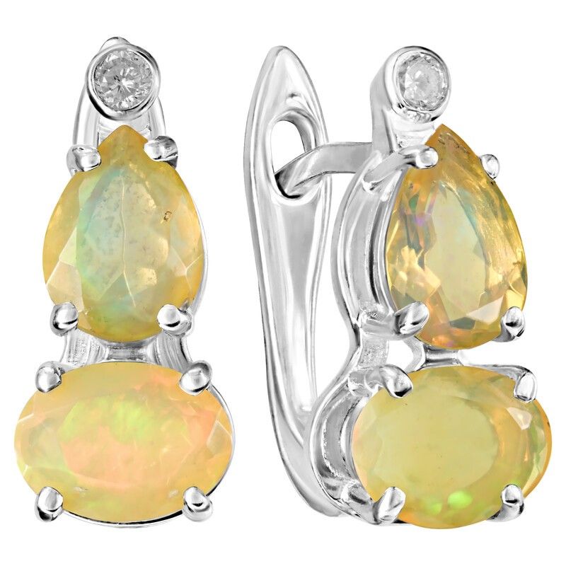 Серебряные серьги с натуральным опалом (1 класс) - коллекция Сансара / Без покрытия.Средний вес украшения с камнями 3.24 гр.Месторождение(я): Опал (Эфиопия).Ювелирные вставки:Опал (Натуральный) овал 5*7 мм., средний вес: 0.46 карат.Опал (Натуральный) груша 5*7 мм., средний вес: 0.38 карат.Белый Нанокристалл круг 2 мм., средний вес: 0.06 карат.Все изделия собственного производства и имеют гарантию 12 месяцев. Арт. 8702NP . Опал – это благородный камень, известный ещё с древности. Ему приписывали разнообразные магические свойства. Окраска опала многовариантна, выделяют более ста типов. Он помогал справиться с порчей и сглазом, защищал от негативной энергетики, способствовал излечению мигреней. Как талисман для ребенка, становился защитником от дурных сил и заболеваний.