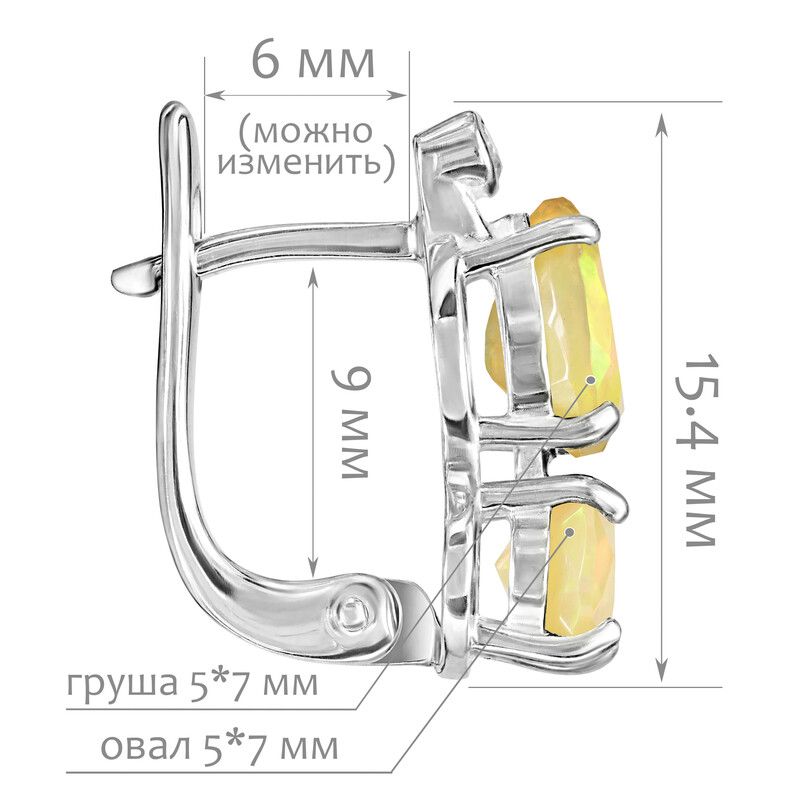 Серебряные серьги с натуральным опалом (1 класс) - коллекция Сансара / покрытие Белый Родий.Средний вес украшения с камнями 3.28 гр.Месторождение(я): Опал (Эфиопия).Ювелирные вставки:Опал (Натуральный) овал 5*7 мм., средний вес: 0.46 карат.Опал (Натуральный) груша 5*7 мм., средний вес: 0.38 карат.Белый Нанокристалл круг 2 мм., средний вес: 0.06 карат.Все изделия собственного производства и имеют гарантию 12 месяцев. Арт. 8702WR . Опал – это благородный камень, известный ещё с древности. Ему приписывали разнообразные магические свойства. Окраска опала многовариантна, выделяют более ста типов. Он помогал справиться с порчей и сглазом, защищал от негативной энергетики, способствовал излечению мигреней. Как талисман для ребенка, становился защитником от дурных сил и заболеваний.