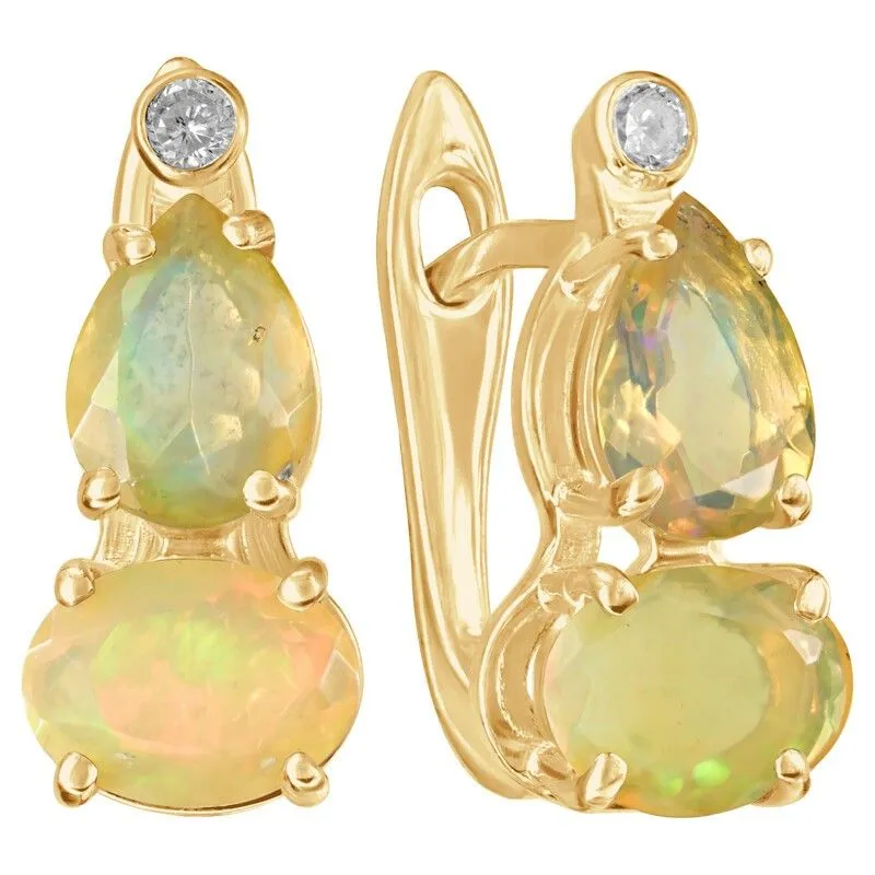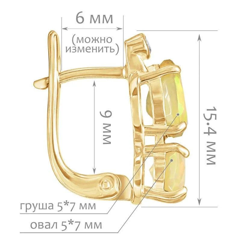 Серебряные серьги с натуральным опалом (1 класс) - коллекция Сансара / покрытие Желтое Золото.Средний вес украшения с камнями 3.33 гр.Месторождение(я): Опал (Эфиопия).Ювелирные вставки:Опал (Натуральный) овал 5*7 мм., средний вес: 0.46 карат.Опал (Натуральный) груша 5*7 мм., средний вес: 0.38 карат.Белый Нанокристалл круг 2 мм., средний вес: 0.06 карат.Все изделия собственного производства и имеют гарантию 12 месяцев. Арт. 8702YG . Опал – это благородный камень, известный ещё с древности. Ему приписывали разнообразные магические свойства. Окраска опала многовариантна, выделяют более ста типов. Он помогал справиться с порчей и сглазом, защищал от негативной энергетики, способствовал излечению мигреней. Как талисман для ребенка, становился защитником от дурных сил и заболеваний.