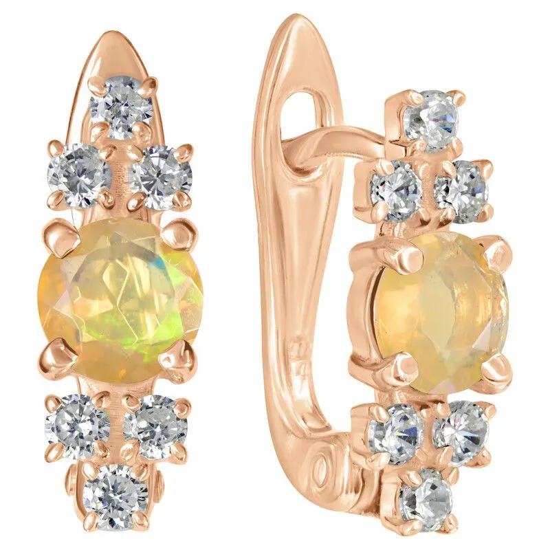 Серебряные серьги с натуральным опалом (1 класс) - коллекция Нова / покрытие Красное Золото.Средний вес украшения с камнями 2.56 гр.Месторождение(я): Опал (Эфиопия).Ювелирные вставки:Опал (Натуральный) круг 5 мм., средний вес: 0.31 карат.Белый Нанокристалл круг 2 мм., средний вес: 0.06 карат.Все изделия собственного производства и имеют гарантию 12 месяцев. Арт. 8716RG . Опал – это благородный камень, известный ещё с древности. Ему приписывали разнообразные магические свойства. Окраска опала многовариантна, выделяют более ста типов. Он помогал справиться с порчей и сглазом, защищал от негативной энергетики, способствовал излечению мигреней. Как талисман для ребенка, становился защитником от дурных сил и заболеваний.