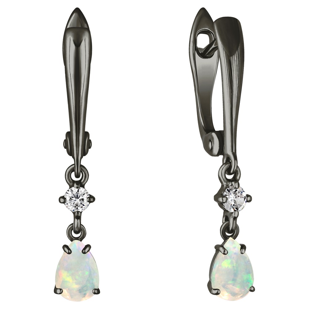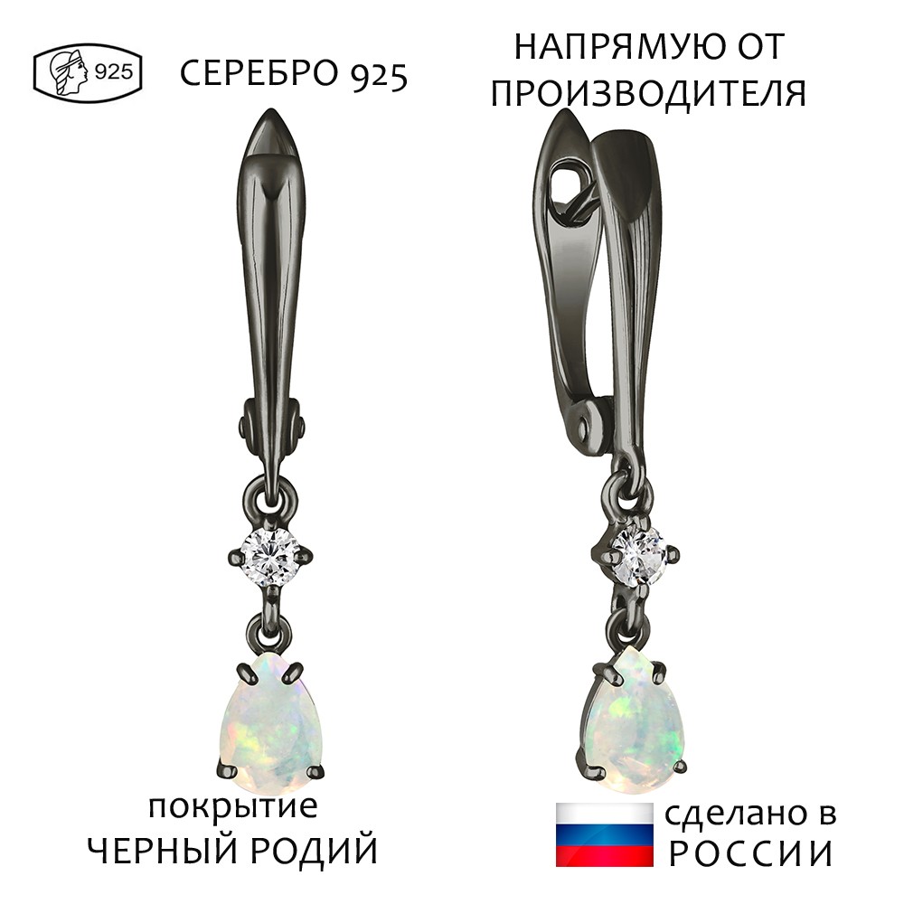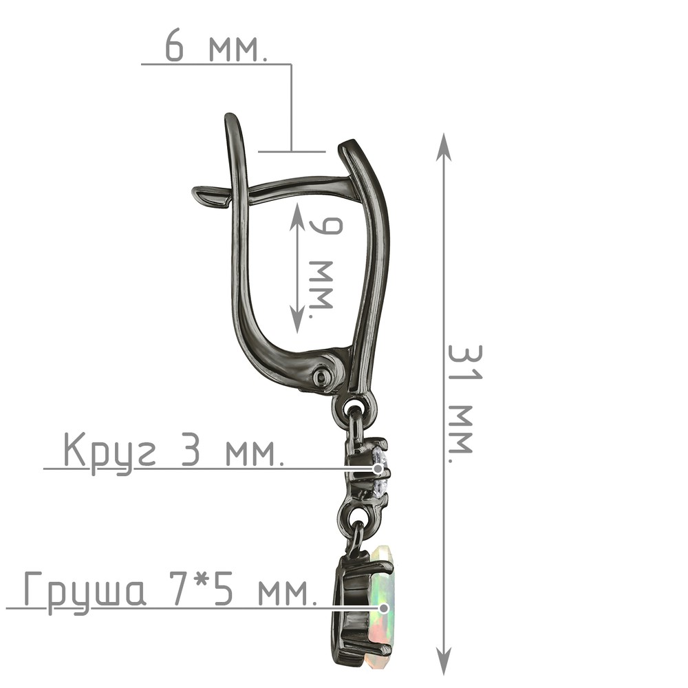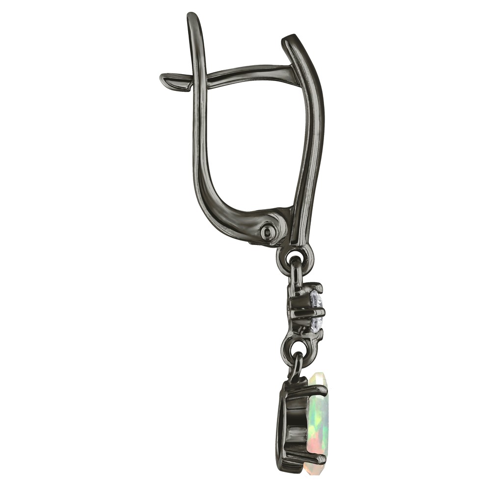 Серебряные серьги с натуральным опалом (1 класс) - коллекция Алсу (малая) / Черный Родий.