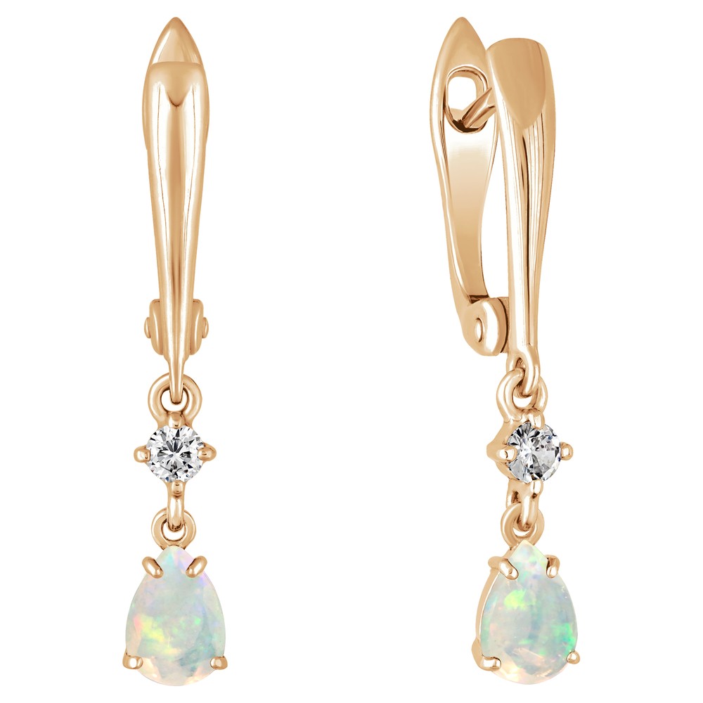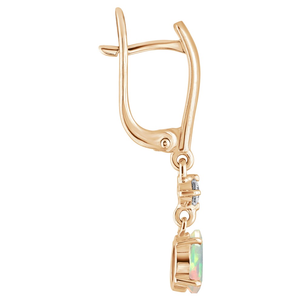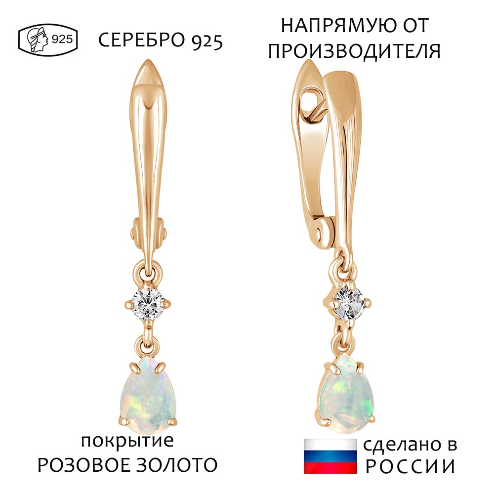 Серебряные серьги с натуральным опалом (1 класс) - коллекция Алсу (малая) / Розовое Золото.