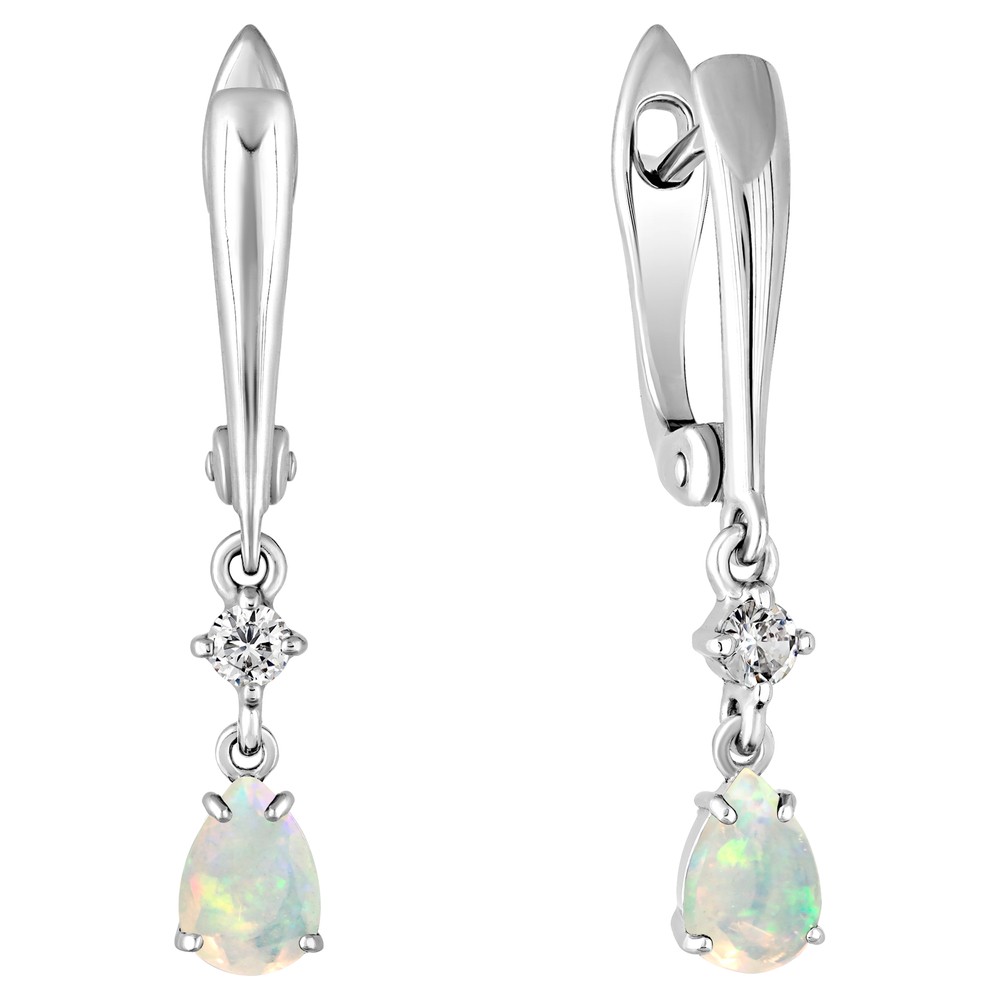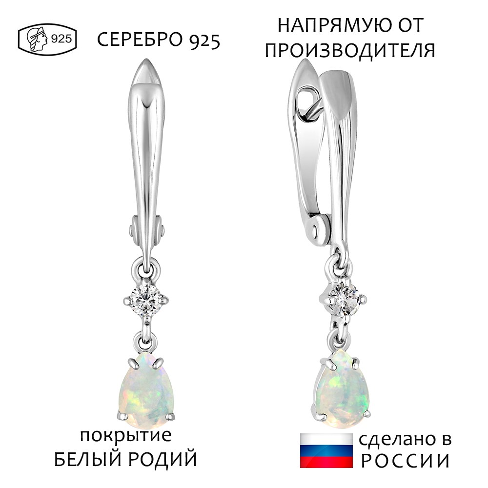 Серебряные серьги с натуральным опалом (1 класс) - коллекция Алсу (малая) / Белый Родий.