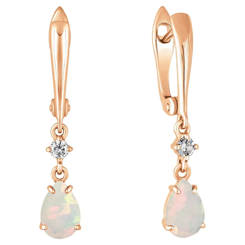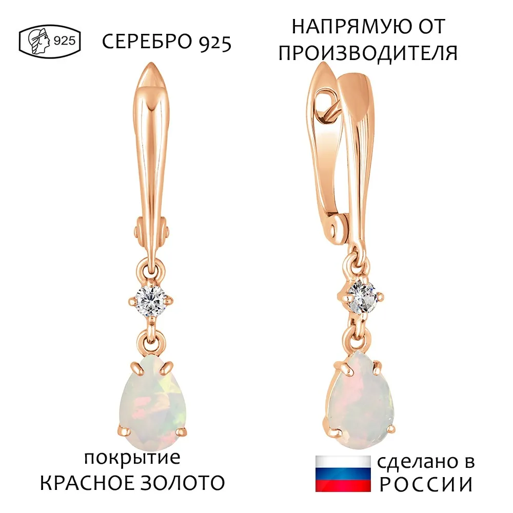 Серебряные серьги с натуральным опалом (1 класс) - коллекция Алсу (большая) / Красное золото.